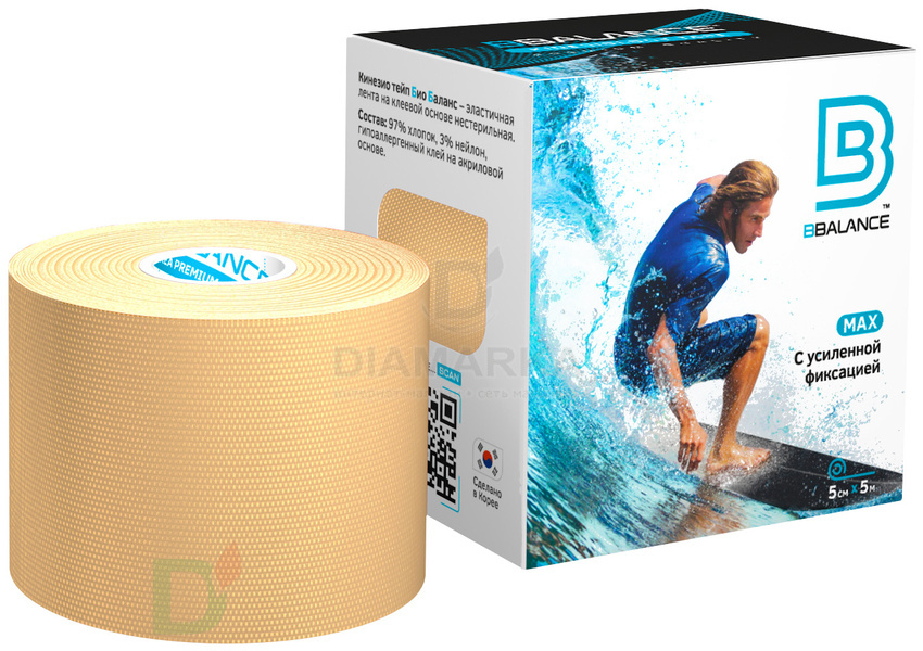 <h2>Эластичный, как кожа</h2> Тейп (он же кинезиотейп) - это эластичная хлопковая лента с клеевой основой. Эластичность тейпов BB схожа с эластичностью кожи: лента никак не ощущается на теле и не причиняет дискомфорт при движении!<br> <br> <h3>Где и для чего используются тейпы?</h3> <ul> <li>для снятия боли в мышцах и суставах</li> <li>для предотвращения травм во время занятий спортом</li> <li>тейпирование помогает разгрузить мышцы и правильно перераспределить нагрузку (например, во время беременности)</li> <li>для фиксации диа-гаджетов, канюль, медицинских повязок</li> <li>в качестве замены обычному пластырю</li> <li>при ушибах, вывихах, растяжениях, отеках</li> <li>при ДЦП и нарушениях в работе опорно-двигательного аппарата</li> <li>в спортивной медицине, травматологии, мануальной терапии, косметологии</li> <li>при остеоходрозе, артрите и проч...</li> </ul> <h3>Преимущества тейпов BB:</h3> <ul> <li>коэффициент эластичности 180% (растягивается практически вдвое!)</li> <li>гипоаллергенный состав</li> <li>тейп не препятствует дыханию кожи</li> <li>хлопковая лента достаточно быстро высыхает при намокании</li> <li>не вызывает раздражений</li> <li>в составе нет латекса (латекс - сильный аллерген)</li> <li>не стягивает кожу и не сковывает движений</li> <li>один тейп выдерживает в среднем 7 дней непрерывной носки</li> </ul> Тейпы с пометкой "MAX" имеют усиленную фиксацию и делают возможным более длительное ношение ленты. Им не страшна вода и большая амплитуда движений.<br> Тейпы серии "KIDS" предназначены для детей. Яркий уникальный дизайн позволяет проводить процедуру тейпирования без стресса даже у самых маленьких пациентов!<br> Тейпы серии "LITE" предназначены специально для чувствительной кожи.<br> <h4>Состав тейпа:</h4> 97% - хлопок<br> 3% - нейлон<br> гипоаллергенный акриловый клей<br> <h4>Формат ленты:</h4> длина - 5 метров<br> ширина - 5 см