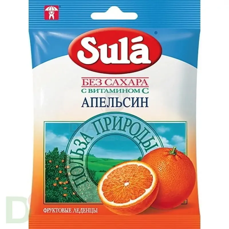 Леденцы без сахара ЗУЛА Апельсин с витамином С, 60 г.
