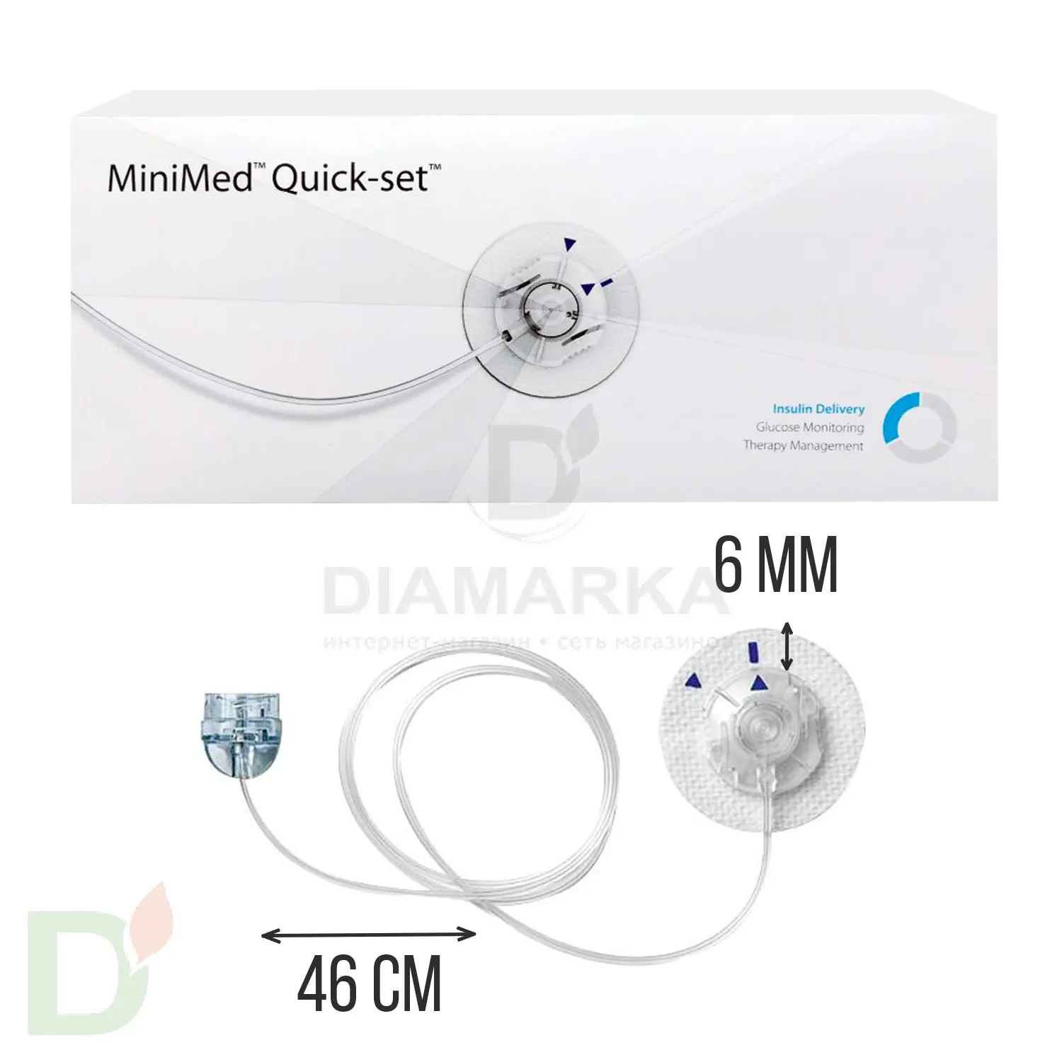 Квик Сет – это одноразовое инфузионное устройство, предназначенное для подкожного введения инсулина, подаваемого из резервуара инсулиновой помпы Paradigm MMT-712, Paradigm Real Time MMT-522, Paradigm Real Time MMT-722 и Paradigm Veo MMT-754.