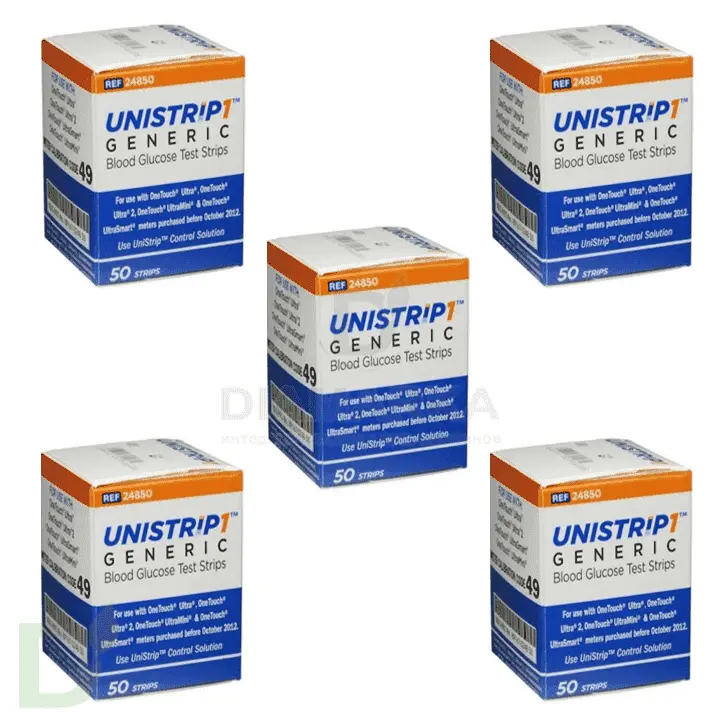 <h2>Вы используете глюкометр OneTouch Ultra или UltraEasy?</h2> <p> Хотите тратить на тесты к любимому прибору меньше? Существенно меньше... Попробуйте тест-полоски дженерики Unistrip.<br> <br> </p> <h3>Тест-полоски дженерики Unistrip от Диаконт</h3> <p> Юнистрип — продукт компании Диаконт, разработанный специально для использования с глюкометрами ВанТач Ультра и ВанТач УльтраИзи. Бюджетный аналог - это вовсе не худший выбор. А наоборот: очень продуманный и взвешенный. Такие тест-полоски соответствуют всем современным стандартам и критериям качества и позволяют получить точный результат за считанные секунды! При этом цена в 2, а то и 3 раза ниже, чем на оригинал.<br> <br> 5 пачек по 50 тест-полосок в каждой </p> <p> <b>Производитель:</b> ОК Биотек (Тайвань/Россия) </p> <p> <br> </p>