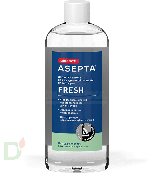 Асепта Фреш - комплексный ополаскиватель для ежедневной гигиены полости рта. Обладает следующим действием:- снижает повышенную чувствительность зубов