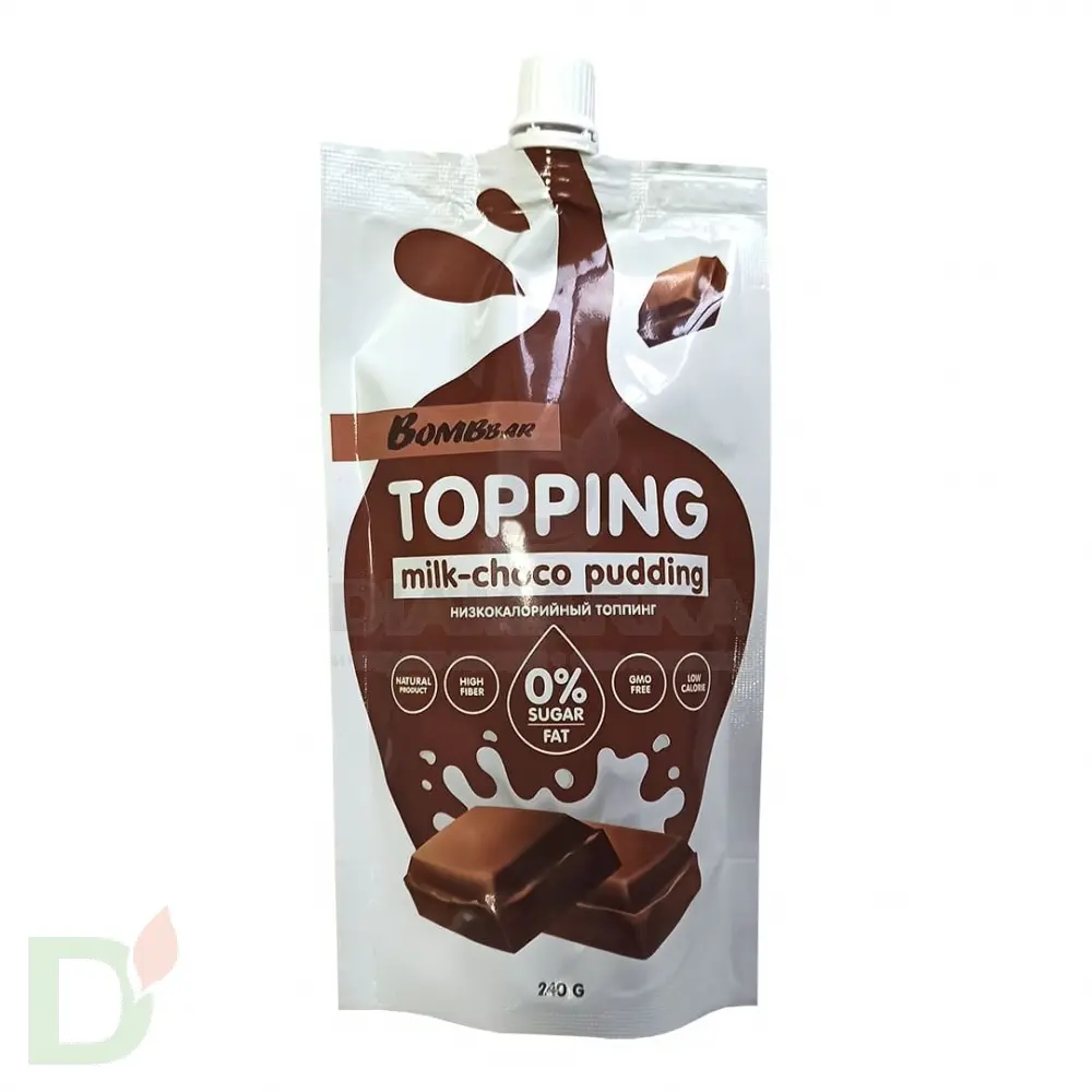 <h2>8 калорий, 0 жиров, минимум углеводов</h2> Об этом можно было только мечтать. Представьте: в ваших силах сделать привычные (возможно даже чуть поднадоевшие) блюда еще вкуснее и ярче! При этом их калорийность практически не изменится.<br> <h2>Топпинг без сахара, химии и ГМО</h2> Идеально для тех, кто долго и придирчиво выбирает продукты по составу. В составе топпингов Бомббар вы не найдете никакого криминала. Низкий гликемический индекс, минимум ккал и углеводов точно убедят вас попробовать эту вкуснятину!<br> <br> Подходит для беременных и кормящих, людей с диабетом, спортсменов и тех, кто на диете.<br> <h2>Куда добавлять топпинг</h2> Вариаций использования топпингов масса. Вот лишь некоторые из них:<br> <ul> <li>в кашу, творог, йогурт</li> <li> как вкусовая добавка к мороженому</li> <li> составляющая для сладких тостов</li> <li> к фруктовому салату</li> <li> в качестве пропитки для домашнего торта</li> <li> к блинчикам, оладьям, сырникам</li> <li> в напитки и коктейли</li> <li> как украшение для домашних десертов</li> </ul> <h2>Состав топпинга шоколадного</h2> вода, молоко сухое обезжиренное, изомальтоолигосахарид, какао порошок натуральный, загустители (ксантановая камедь, гуаровая камедь), ароматизаторы натуральные, регулятор кислотности (лимонная кислота), антиокислитель (аскорбиновая кислота), консерванты (сорбат калия, бензоат натрия), подсластитель (сукралоза).<br> <h2>КБЖУ на порцию 15 грамм</h2> <ul> <li>белки - 1,3</li> <li> жиры - 0,1</li> <li> углеводы - 1,9</li> <li> пищевое волокно - 2,2</li> <li> ккал - 18</li> </ul> <b>Срок годности топпинга - 6 месяцев с даты изготовления</b>